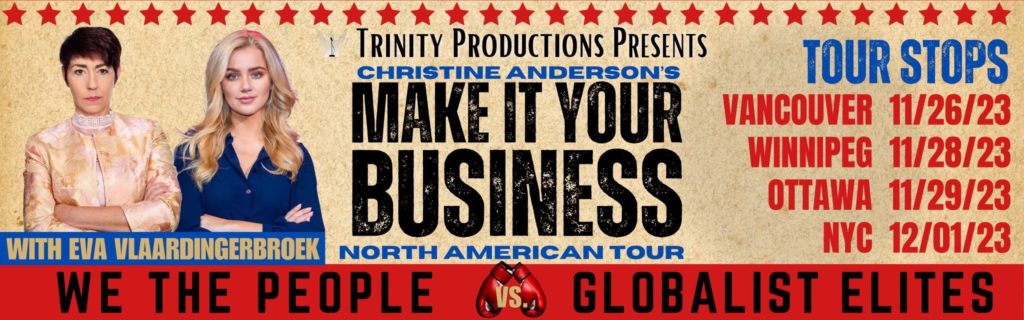 Access official videos from the 2023-2024 tour! Calgary, Toronto, Whitby, Montreal, New Jersey, Manitoba, Vancouver and Netherlands! Watch this spot for new videos released weekly! Access Videos Previous Event Tours & Guest Appearances KEYNOTE SPEAKERS Christine Anderson German MEP Vera Sharav Documentary Film Producer / Holocaust Survivor Eva Vlaardingerbroek Dutch Political Commentator Naomi Wolf Journalist/Author WATCH THE TOUR VIDEOS WATCH TOUR VIDEOS WATCH TOUR VIDEOS Watch Event Recordings Watch Event Recordings Naomi Wolf - Toronto ON Canada January 2025 The videos for this event are not available publicly. Get on the List Be the first to know about upcoming events. Email City Country Name State Hang tight.... Let's Go! Thanks! You're in! Official Tour Merchandise Limited quantities while supplies last. View All Merch Donate If you like what we do and want to support our work…. Select the button below to make a contribution or buy us a coffee! Donate Christine Anderson What’s Christine up to next? Keep in the know about upcoming tour dates and locations! Find past tour information, pics and videos! FIND OUT MORE... Vera Sharav Learn more about our recent jUNE 2023 tour with Director Vera Sharav and get past event info, upcoming premiere screening dates, appearances and more! FIND OUT MORE...